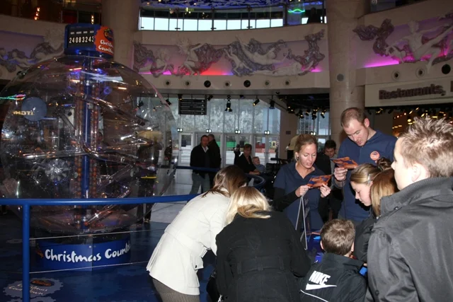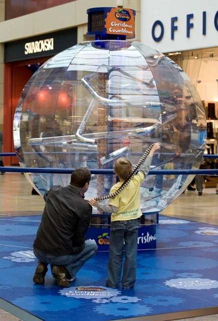 Three of these kinetically powered Christmas Countdown Clocks were installed at 3 leading shopping malls for the whole of December.